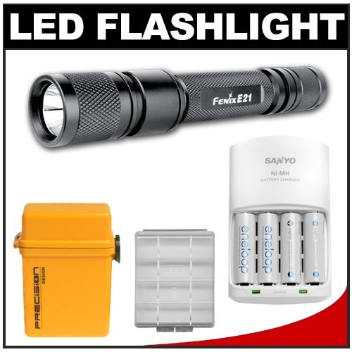 Fenix E21 Waterproof LED Torch Flashlight + Sanyo Eneloop Power Kit Feature